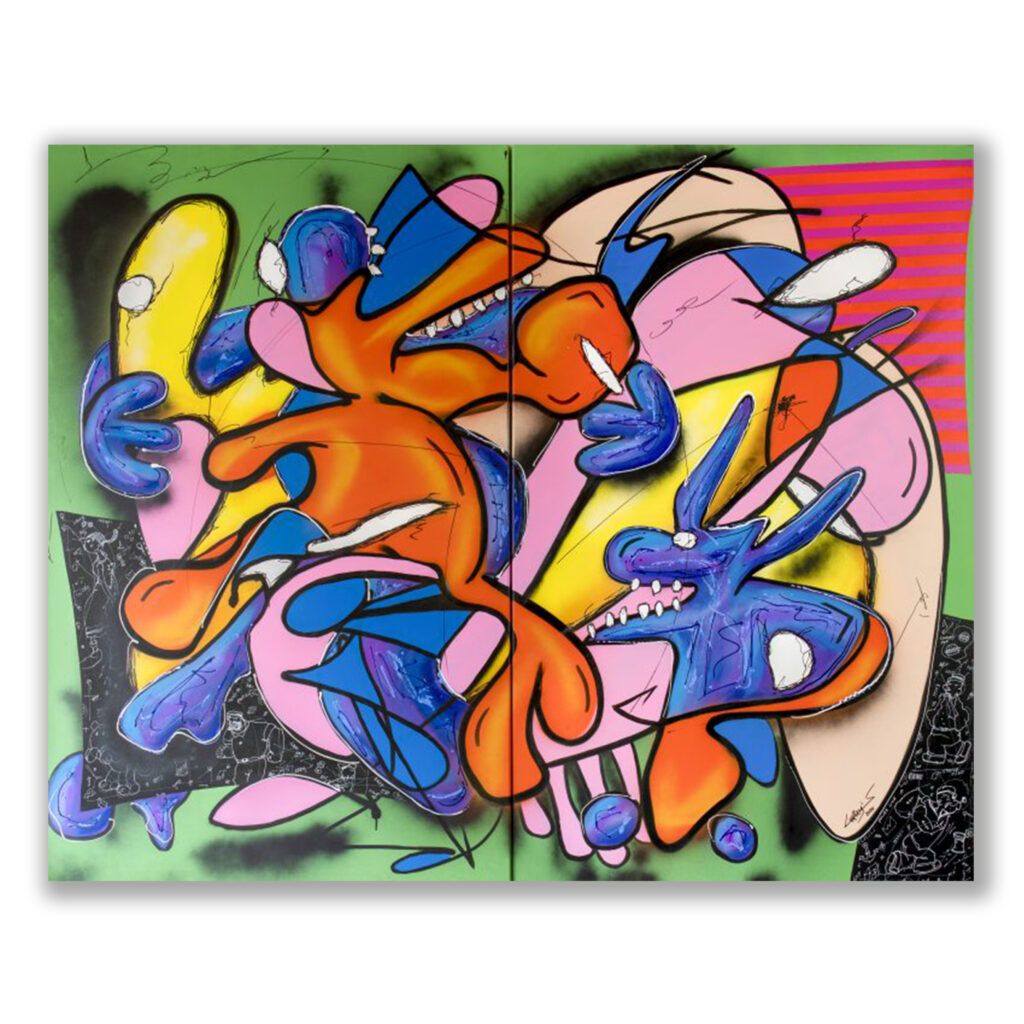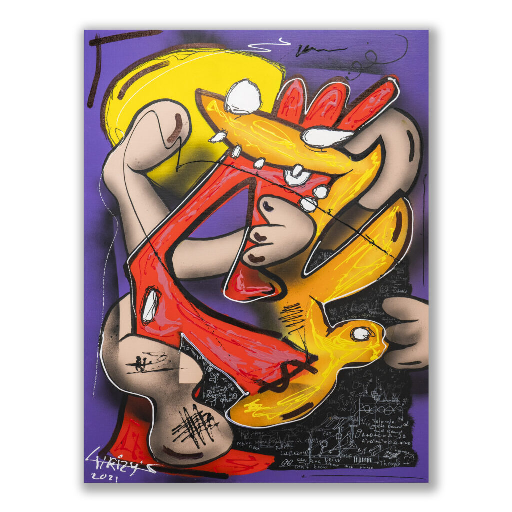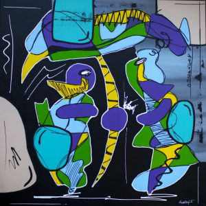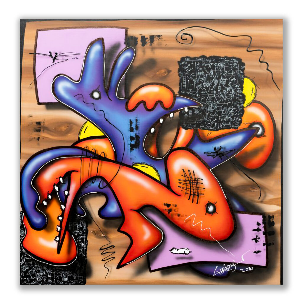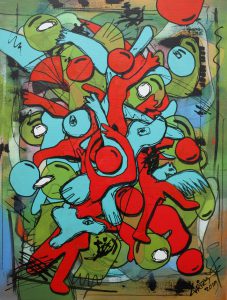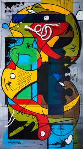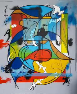 Modern abstract paintings with a touch of urban and sometimes also pop art. Bright colors and strong contrasts predominate. Christian’s paintings symbolize love and/or everyday events. Each painting has its own story. The abstraction will allow everyone to see their own adventure in the work. If you look at the abstract figures longer and read the title of the painting, you will recognize more and more familiar shapes. The painting then takes shape and comes to life. The abstract shapes that Christian uses are often people, animals, things and especially hands. If you would like more information about a particular painting, please contact Christian. He will then explain the work in more detail. A certificate of authenticity is supplied with each painting. Larger works can be shipped rolled up to reduce transport costs.