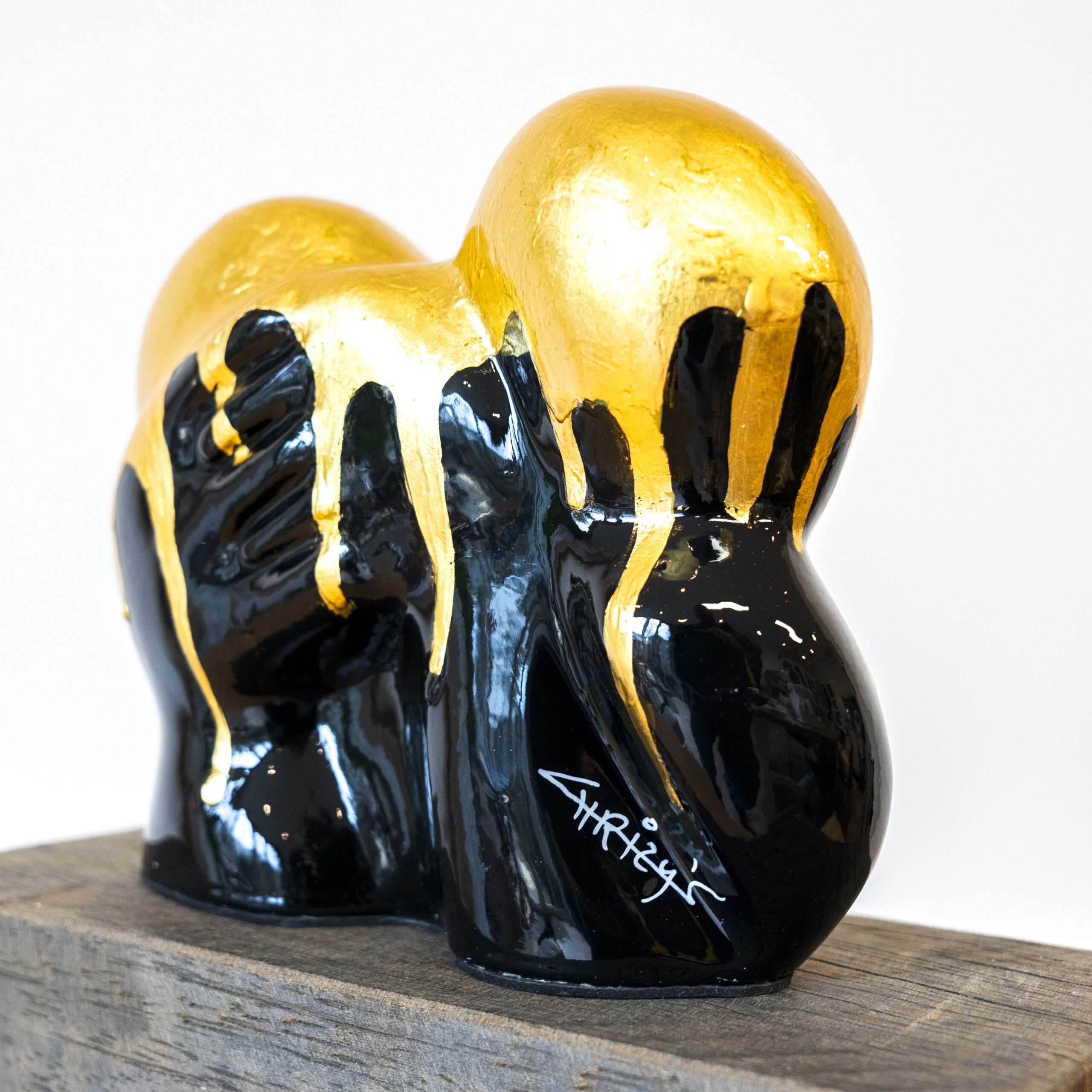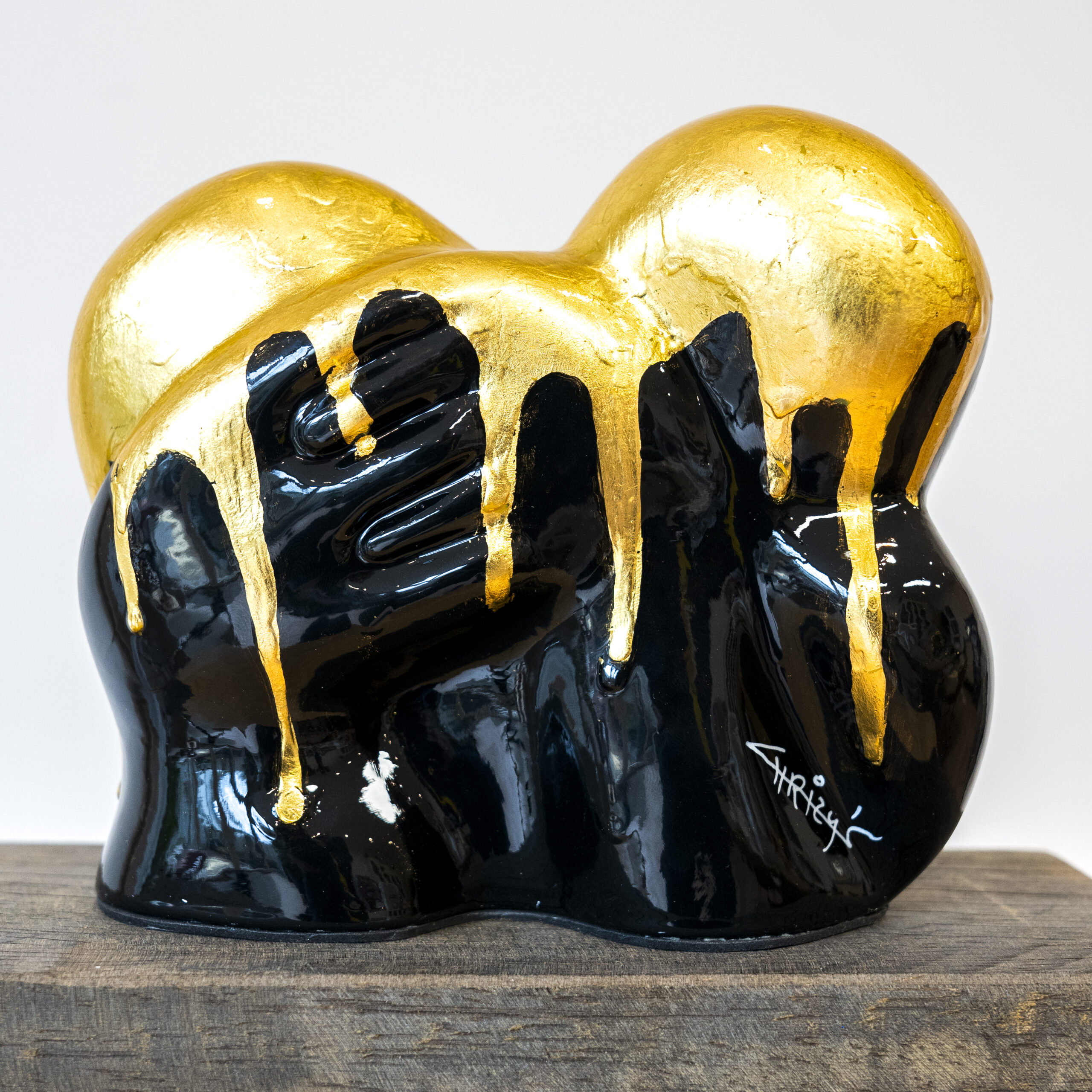 Christian van Hedel’s artworks are all inspired by everyday life and love. He has miraculously managed to convert his 2D work into 3D sculptures. These very special sculptures have thus been given an extra dimension and come even more to life. Each sculpture is hand crafted and hand painted. Each sculpture is therefore very unique. These sculptures are from the Friendship series. You also see people facing each other, and the usual hands that are folded together. They depict friendship and love. Commitment and cheerfulness. The material of the sculpture is marble resin. Marble resin is used because it is a product with a high quality value. It’s hard and heavy. The urban figures are painted by hand with the very recognizable shapes that Christian usually uses in his works. These are painted by hand with acrylic paint and a two-component clear car lacquer is used as a top layer. This creates a very bright glossy surface that also protects the sculpture against UV light and scratches. In short, this is a very beautiful, modern work of art with a touch of urban. If you look at it longer to his works, you will recognize more and more. If you would like to know more about a particular artwork, do not hesitate to contact the artist Christian.
