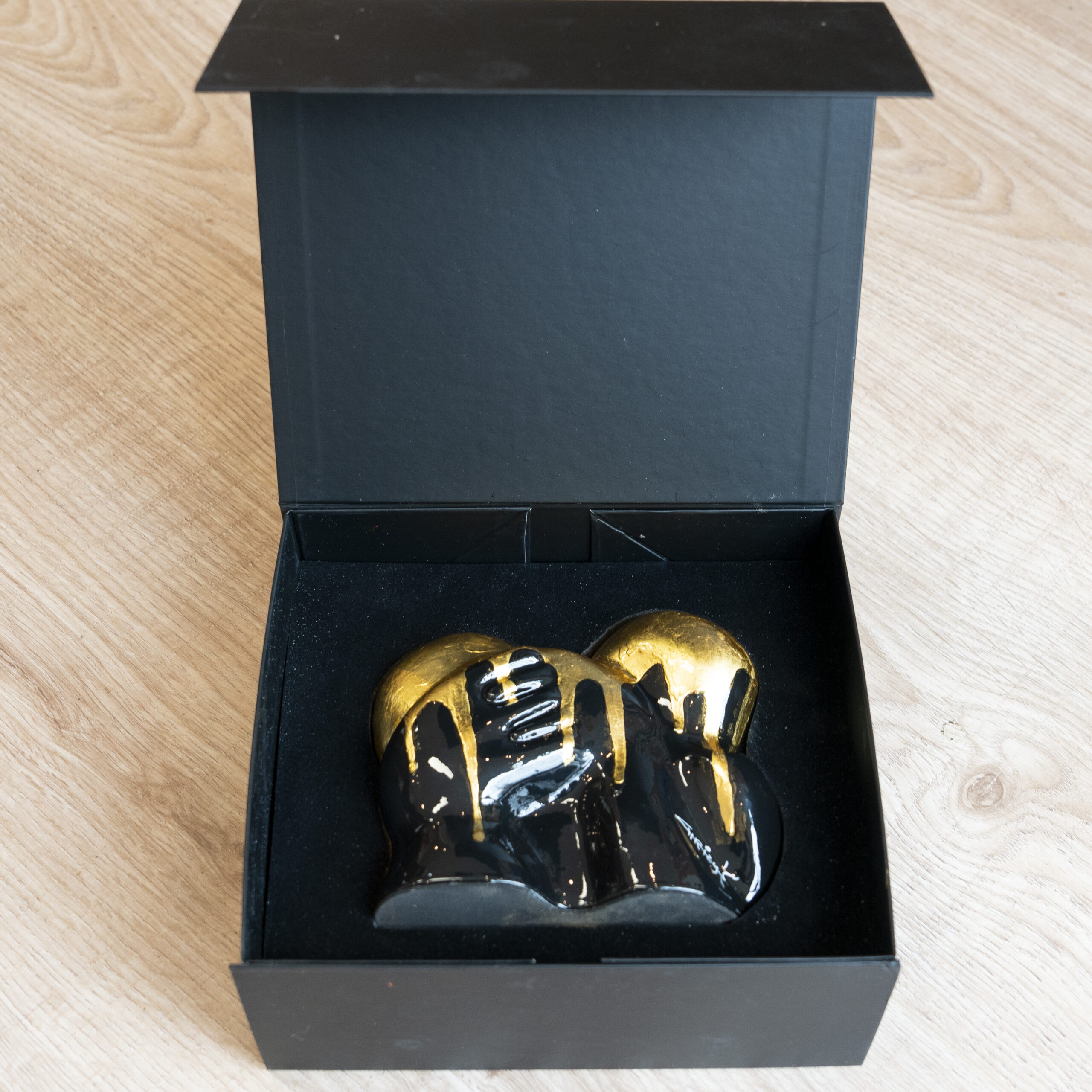 Every sculpture purchased through Christin’s webshop is delivered in a black luxury gift packaging. The sculpture is in black foam rubber. Naturally, each sculpture comes with a numbered certificate of authenticity.