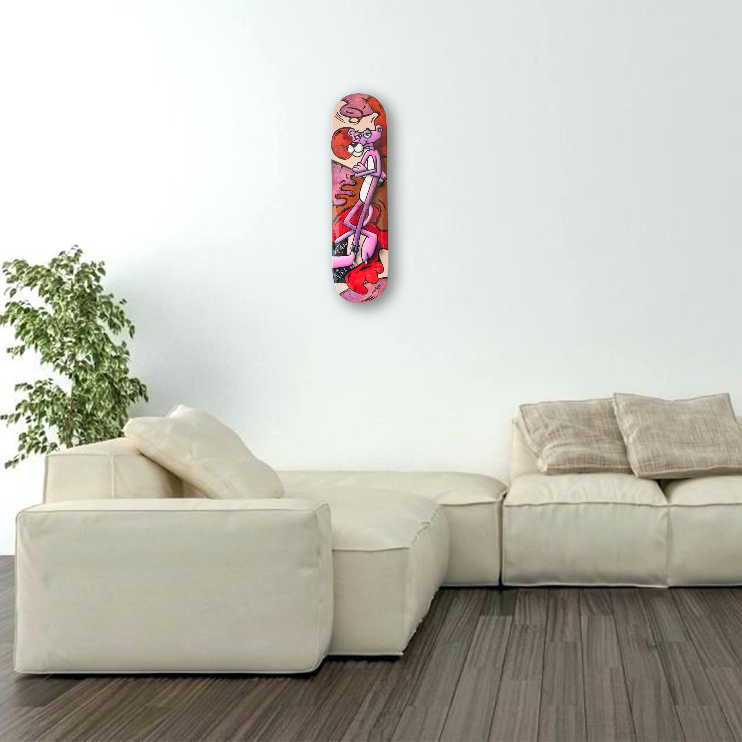 Yeah sure, is a nice thoughtful painting on a scateboard. An abstract modern painting with a touch of urban and pop art.